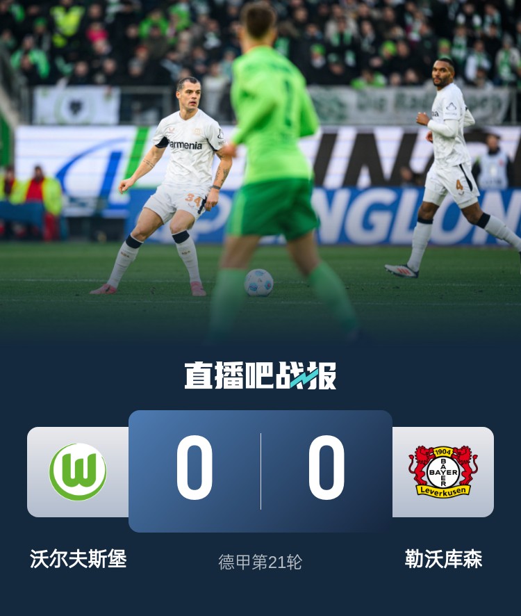 勒沃庫森本輪0-0戰(zhàn)平沃爾夫斯堡,目前球隊落后榜首8分。