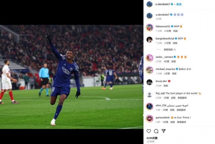 1月30日訊 巴黎在本輪歐冠4-1客勝斯圖加特,上演個人歐冠生涯首個帽子戲法的登貝萊堪稱最大功臣。第17分鐘,巴爾科拉橫傳到門前,登貝萊包抄推射破門,隨后VAR介入,確認進球有效。第35分鐘,登貝萊接應內維斯的傳球,帶球突破到禁區(qū)右側起腳抽射破門。第53分鐘,登貝萊禁區(qū)內接應阿什拉夫的橫傳,順勢迎球抽射破門。他也在賽后通過社媒曬出自己的慶祝照,并配上3個足球表情:“??????”。 本文標簽: 足球 德甲 斯圖加特 法甲 巴黎圣日耳曼 歐冠