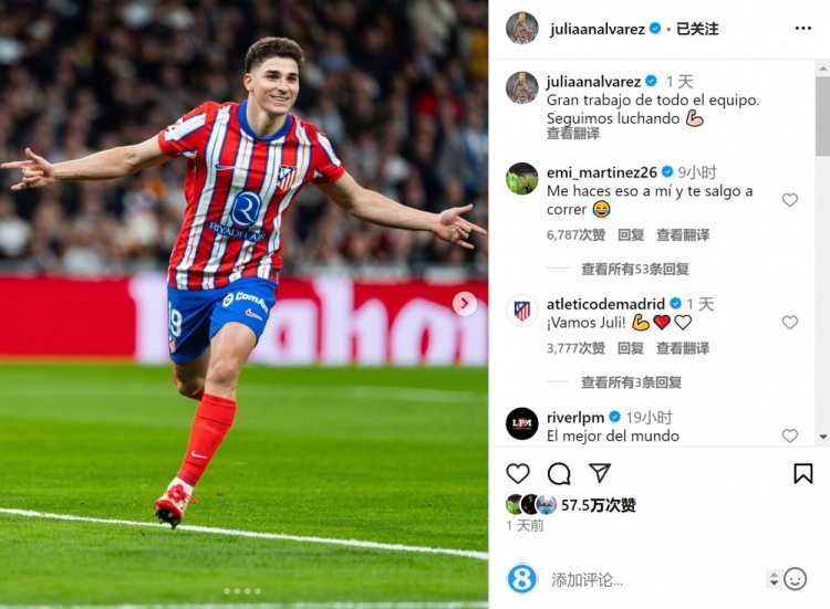2月10日訊 西甲第23輪比賽,阿爾瓦雷斯勺子點球破門,幫助馬競客場1-1戰(zhàn)平皇馬。阿爾瓦雷斯社媒曬照,阿根廷門將大馬丁留言調(diào)侃道:“如果你敢這樣對我,我會追著你跑?!?/p> 本文標(biāo)簽: 足球 西甲 馬德里競技 英超 阿斯頓維拉