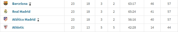 上一次23輪后出現(xiàn)如此焦灼的場面還是13/14賽季。那個(gè)賽季23輪后皇薩競3隊(duì)同積57分,分列前三。那個(gè)賽季爭冠也持續(xù)到最后一輪,最終馬競奪魁。