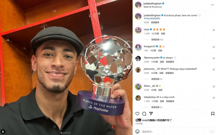1月30日訊 在本輪歐冠,皇馬3-0完勝布雷斯特。本場比賽貝林厄姆破門,賽后他也當(dāng)選歐冠官方全場最佳。貝林厄姆個人社媒曬出與全場最佳獎杯合影,配文寫道:“淘汰賽階段比賽,我們來了!” 本文標(biāo)簽: 足球 西甲 皇家馬德里
