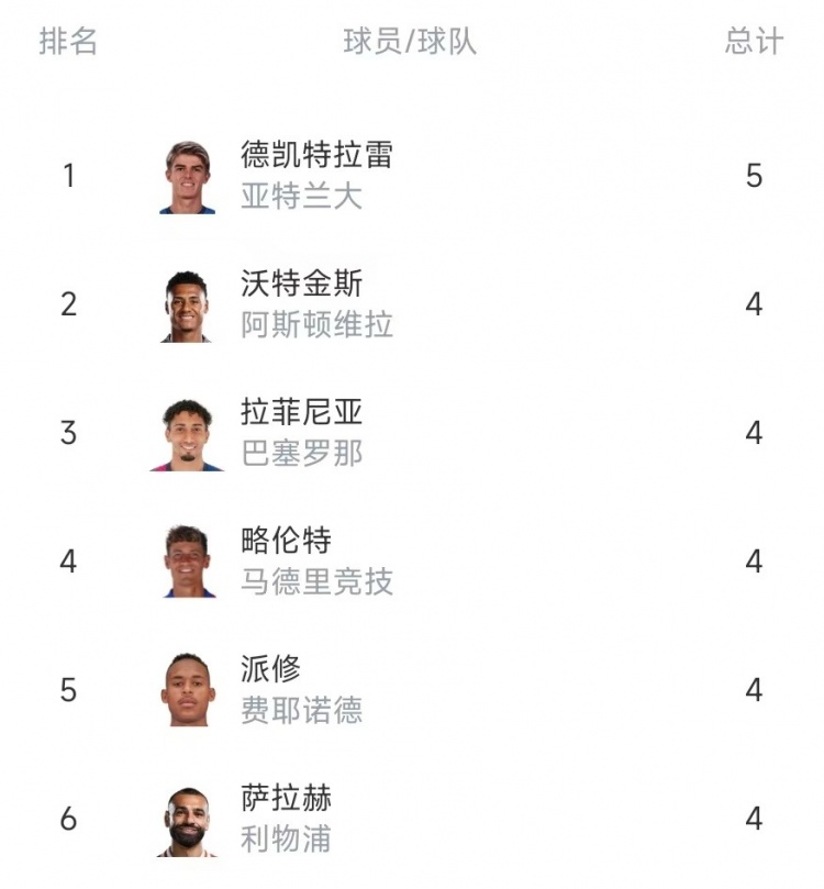 1月30日訊 歐冠聯(lián)賽階段比賽戰(zhàn)罷,德凱特拉雷送出5記助攻,排名歐冠助攻榜首位。歐冠助攻榜:德凱特拉雷(亞特蘭大)——5沃特金斯(維拉)——4拉菲尼亞(巴薩)——4略倫特(馬競(jìng))——4派修(費(fèi)耶諾德)——4薩拉赫(利物浦)——4 本文標(biāo)簽: 足球 英超 利物浦 歐冠 薩拉赫 意甲 亞特蘭大 西甲 馬德里競(jìng)技 巴塞羅那 阿斯頓維拉 荷甲