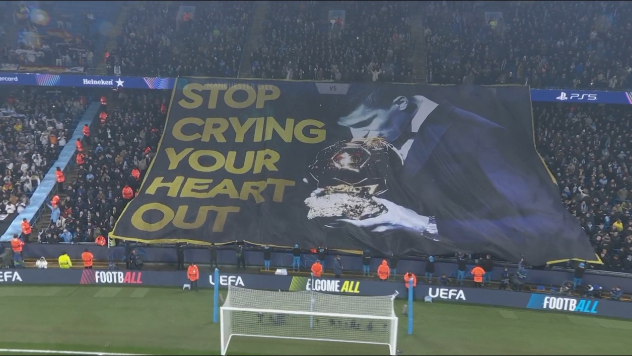 曼城球迷打出羅德里親吻金球獎TIFO:收起你的眼淚!