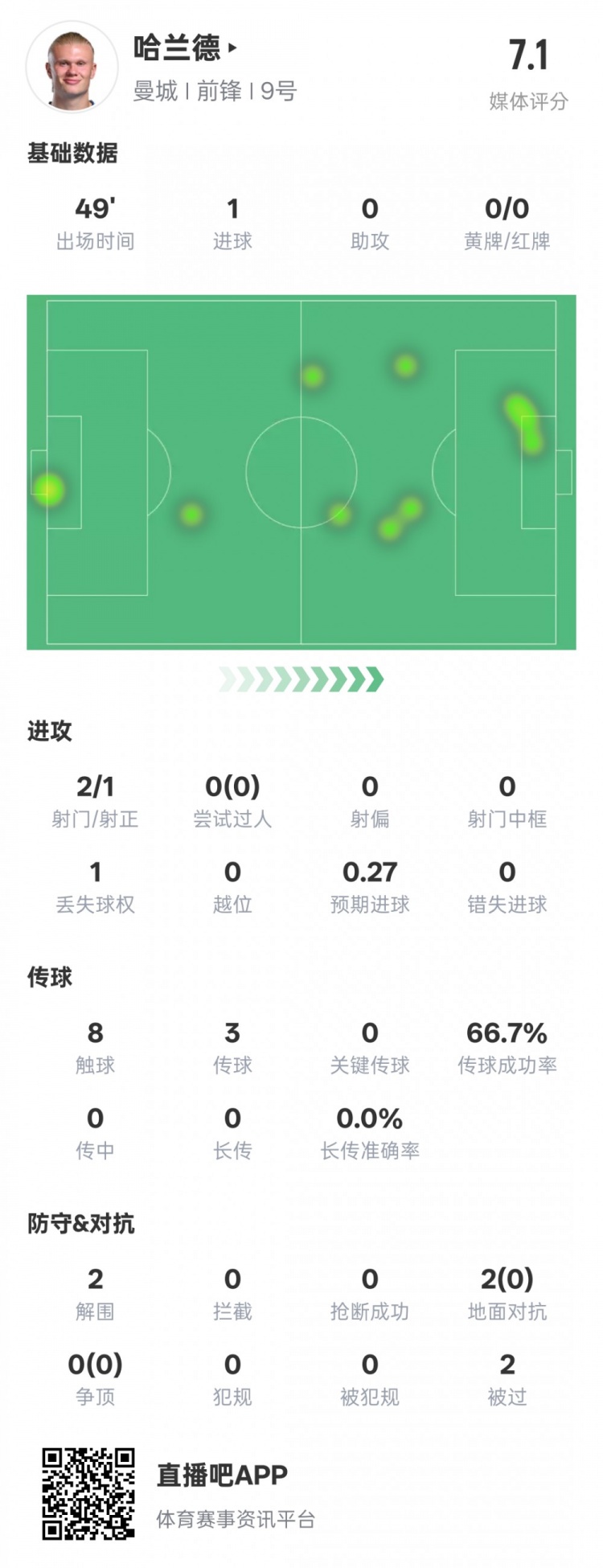 2月12日訊 歐冠淘汰賽附加賽首回合,曼城半場暫1-0領(lǐng)先皇馬。哈蘭德首發(fā)出戰(zhàn),打進(jìn)1粒進(jìn)球,半場評分7.1。哈蘭德半場數(shù)據(jù)如下:進(jìn)球1助攻0射門2射正1丟失球權(quán)1預(yù)期進(jìn)球0.27觸球8傳球3傳球成功率66.7%解圍2地面對抗2地面對抗成功0被過2 本文標(biāo)簽: 足球 英超 曼城 哈蘭德 歐冠